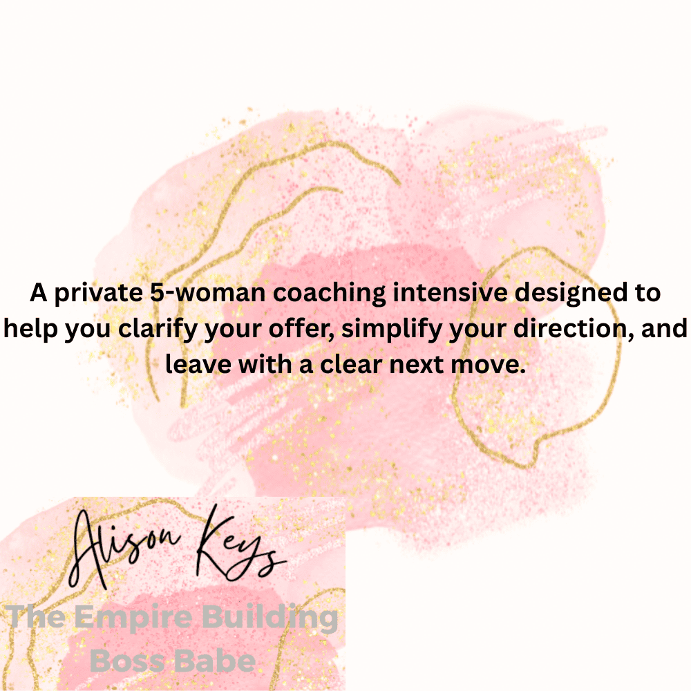 A private 5-woman coaching intensive designed to help you clarify your offer, simplify your direction, and leave with a clear next move.